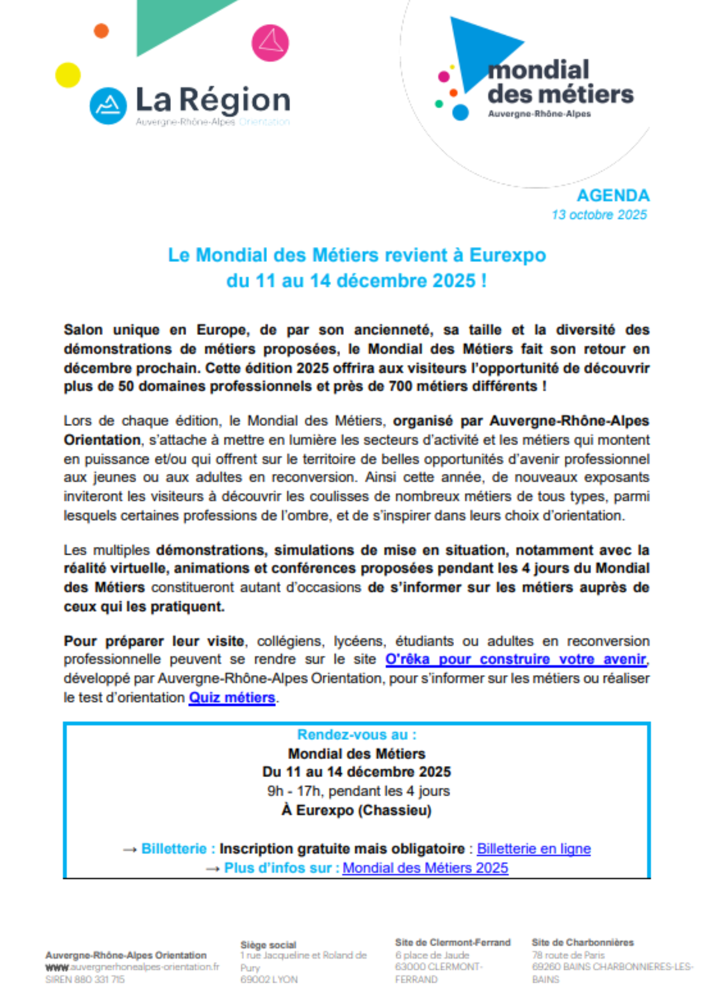 Conformément à la circulaire du 21 novembre 2017, pour des raisons d’intelligibilité et de clarté dans la lecture, nos partenaires sont invités à ne pas faire usage de l’écriture dite inclusive – qui désigne les pratiques rédactionnelles et typographiques visant à substituer à l’emploi du masculin, lorsqu’il est utilisé dans un sens générique, une graphie faisant ressortir l’existence d’une forme féminine – dans les contenus et la communication des actions financées par Auvergne-Rhône-Alpes Orientation.