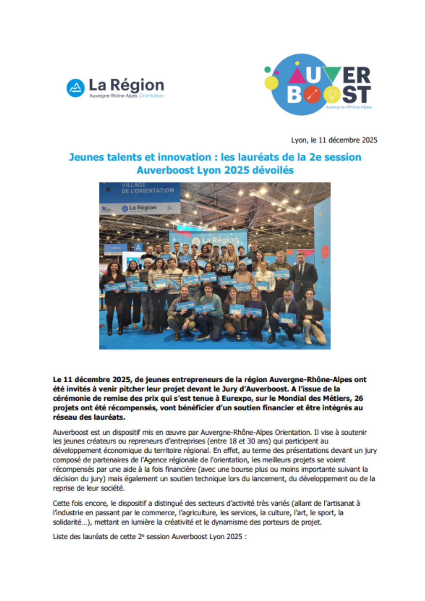 Conformément à la circulaire du 21 novembre 2017, pour des raisons d’intelligibilité et de clarté dans la lecture, nos partenaires sont invités à ne pas faire usage de l’écriture dite inclusive – qui désigne les pratiques rédactionnelles et typographiques visant à substituer à l’emploi du masculin, lorsqu’il est utilisé dans un sens générique, une graphie faisant ressortir l’existence d’une forme féminine – dans les contenus et la communication des actions financées par Auvergne-Rhône-Alpes Orientation.